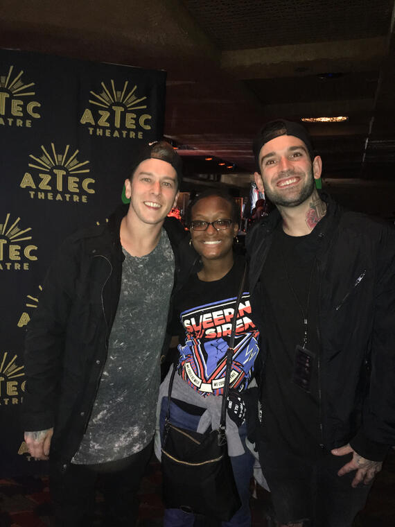 Left: Justin Hills (Bassist for Sleeping With Sirens) & Right: Jack Fowler (Guitarist for Sleeping With Sirens)